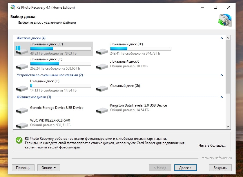- Запустите приложение и выберите диск, на котором раньше хранились удаленные фотографии.