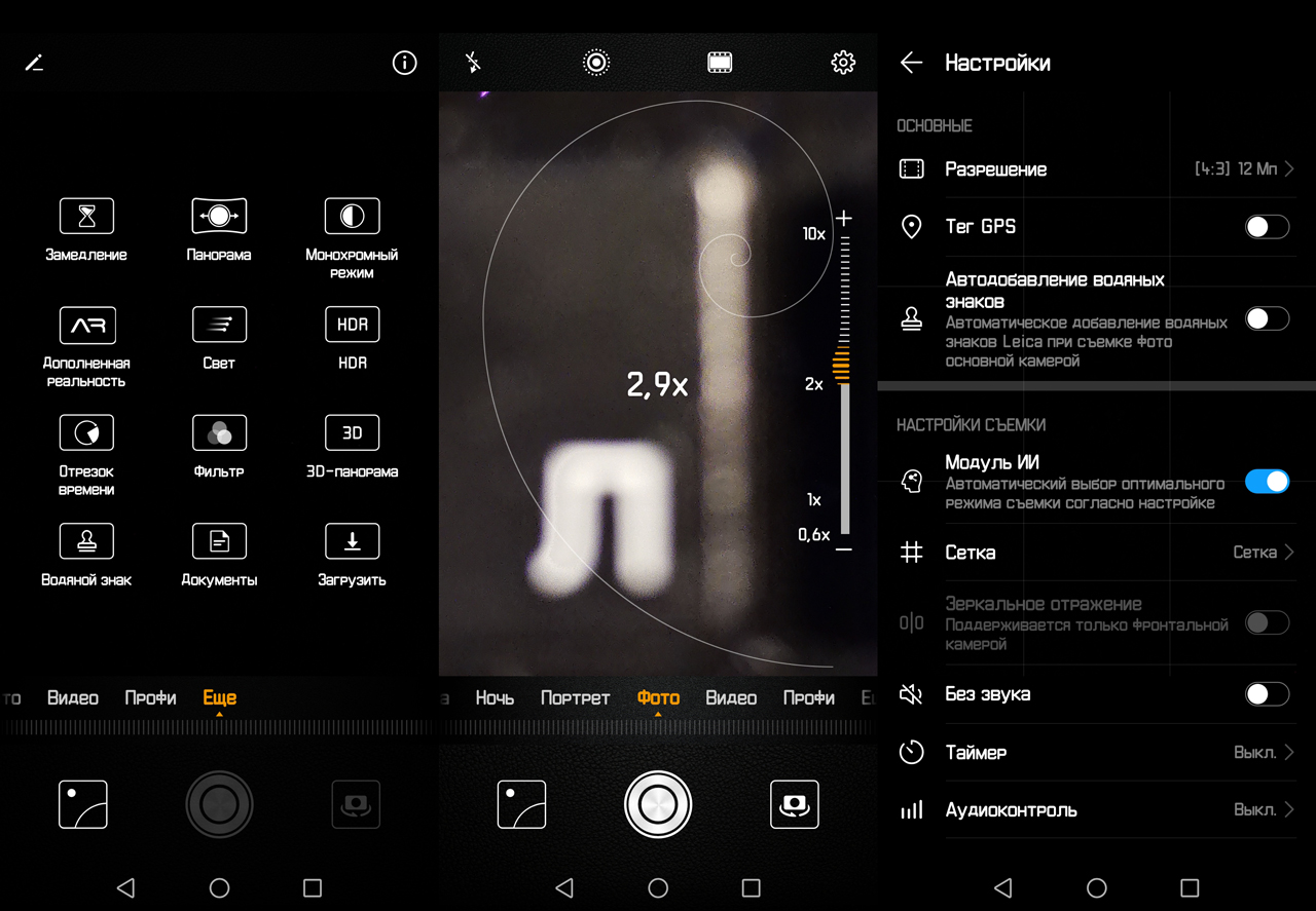Все три камеры на P20 Pro стабилизированы, что объясняет высокое качество фото подвижных объектов и даже при съемке при слабом свете.