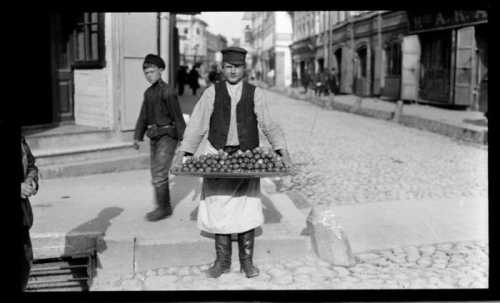 Мужчина попрошайничает возле «Чайной», Россия 1896г
