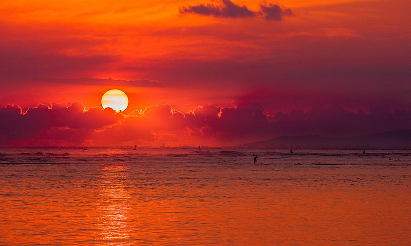 Возьму пример прекрасного дня с голубым небом. Конечно, это приятно, но редко можно увидеть красивые закаты, когда на горизонте не мало облаков, придающих изображению некоторую рельефность. Наоборот, если горизонт полностью закрыт и очень облачен, результат будет редко, классические оранжево-красно-желтые цвета будут скрыты этой облачной массой.