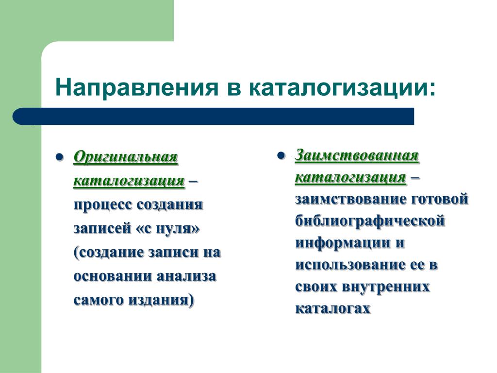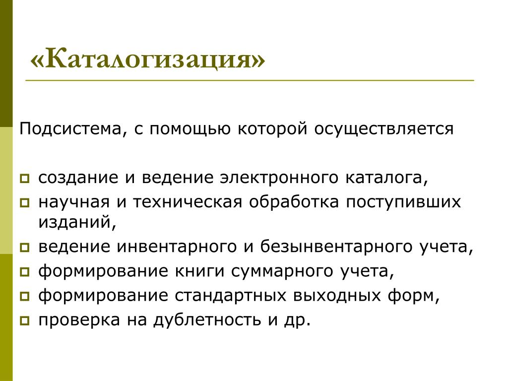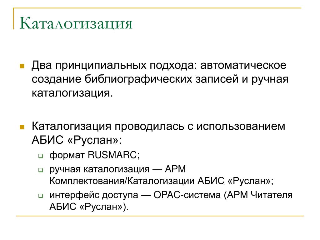 - разрабатывает и внедряет научно-методические основы проведения работ по каталогизации;