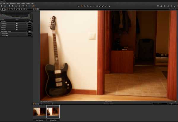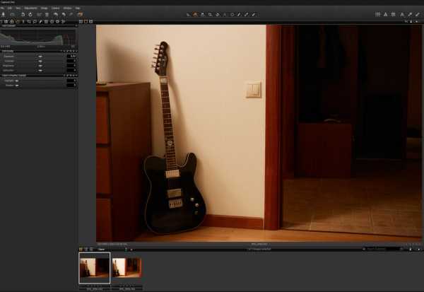 На представленных изображениях я сделал акцент на характере освещённости объектов, используемых в качестве мишени для АФ. Другими словами, та темень, что на снимке с плиткой – это РЕАЛЬНАЯ видимость для глаз на тот момент. Естественно, нормально проэкспонированный кадр был бы светлым, но тогда не понять какова реальная освещённость объектов съёмки. Далее пример с тёмным чуланом. Сначала я стрельнул по гитаре и стене слева, чтобы на снимке отразилось, насколько в чулане темно. И даже привёл скриншот из конвертера, показывающий, что ничего не правилось. В данном случае, если глазами смотреть на стену, то будет так же темно в чулане и для глаз. Я хочу, чтобы вы, уважаемые читатели, осознали данный ФАКТ: стоя в комнате и смотря в чулан, глаза могут различить лишь едва уловимые контуры — одни только тёмные пятна, каждое из которых просто темнее другого. Второй кадр уже фокусировка по чемодану в чулане. Но чтобы было видно, что фокусировка прошла успешно, я не стал экспонировать по стене, а остановился на яркости снимка, где видно все объекты в достаточной мере. ИСО высокое, выдержки на снимке чемодана уже близка к предельно даже при ф/2, что будет ещё одним доказательством крайне непростых условий для автофокуса, которому, плюс ко всему, мешают более яркие объекты вокруг. Но, несмотря на все трудности, фокусировка проходит на ура. Нет, 40д тут не могёт. Увы для меня как для пользователя 40д тоже.