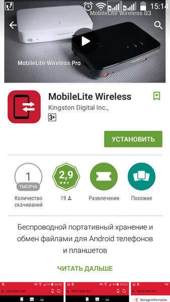 Для полноценного использования MobileLite Wireless G3 необходимо установить на смартфон или планшет программу Kingston MobileLite.