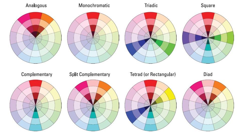 Круг показывает, как между собой сочетать противоположные цвета, чтобы создать уникальную палитру оттенков.
