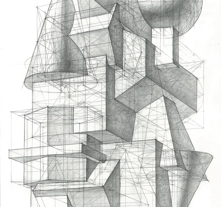Рисунок геометрических фигур карандашом имеет такие этапы: