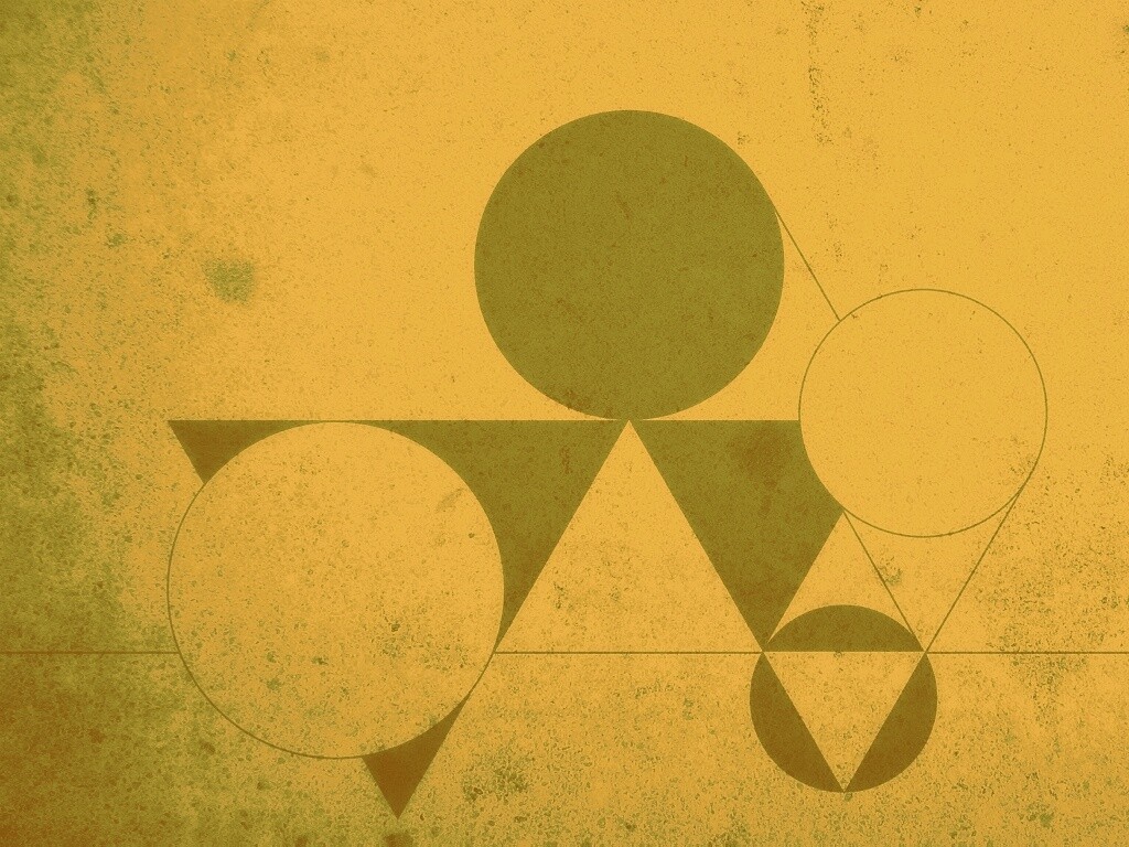 В этом последнем примере мы снова используем композиционные слои, но в сочетании с предполагаемыми и реальными линиями, которые соединяют элементы вместе и разбивают круг на определенные области. Все основные линии исходят из двух мест. Эта композиция преимущественно состоит из треугольников, я выделил основные из них, но если вы присмотритесь, я уверен, что вы найдете много других треугольников меньшего размера.