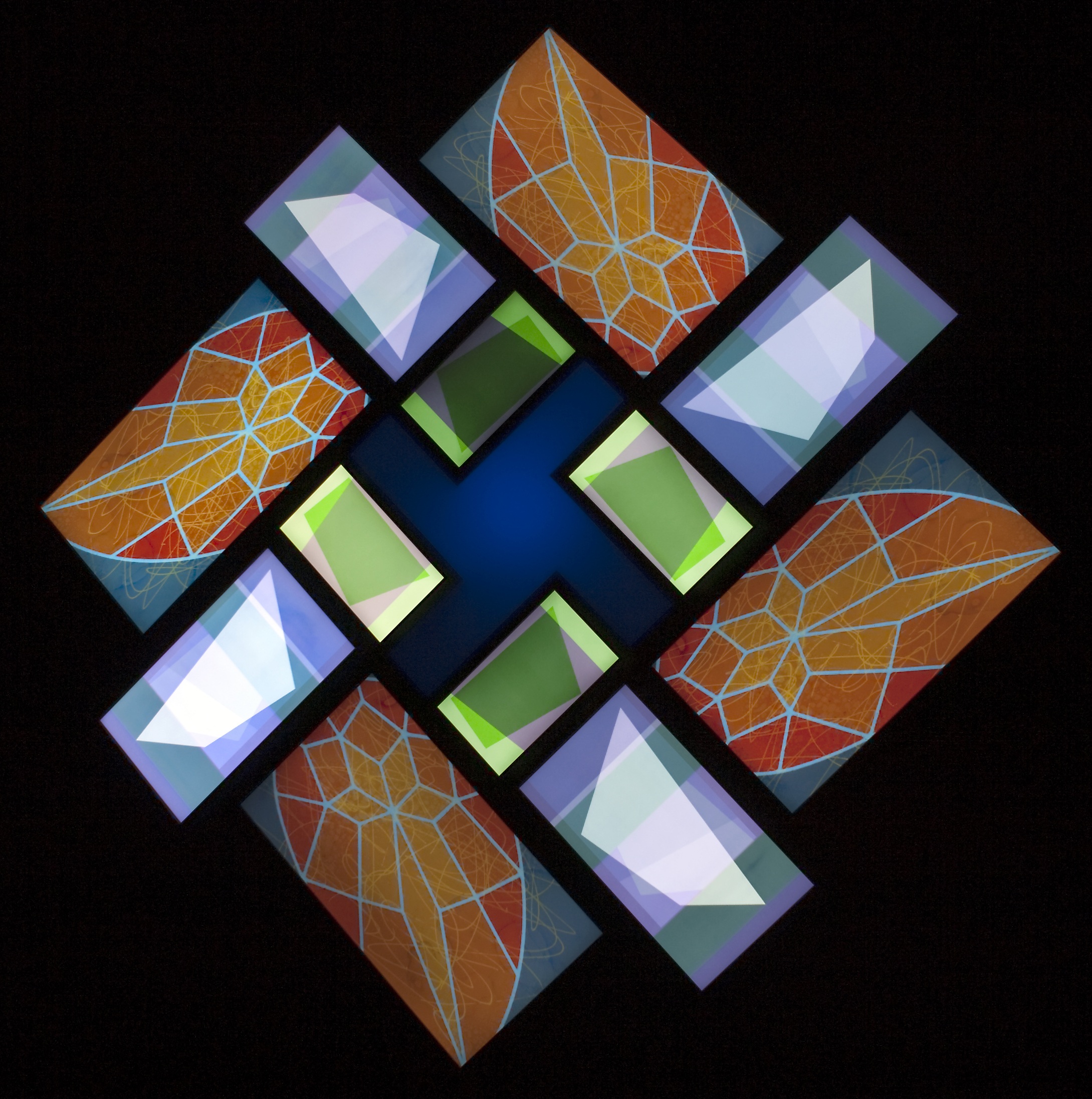 Когда они расположили прямоугольник горизонтально, художники были вынуждены из соображений баланса расположить квадрат справа и другой слева, и они, естественно, частично перекрывались, так что в этой очень простой схеме есть вписанные в кадре два квадрата, которые более или менее перекрываются в зависимости от того, является ли прямоугольник более или менее вытянутым. Эти квадраты, в свою очередь, дают почувствовать свои диагонали, и их пересечение создает в центре маленький квадрат, стоящий на одном из его углов, размер которого меняется пропорционально наложению двух больших квадратов. Комбинации, получающиеся в результате этой процедуры, очень сильно различаются».0007
