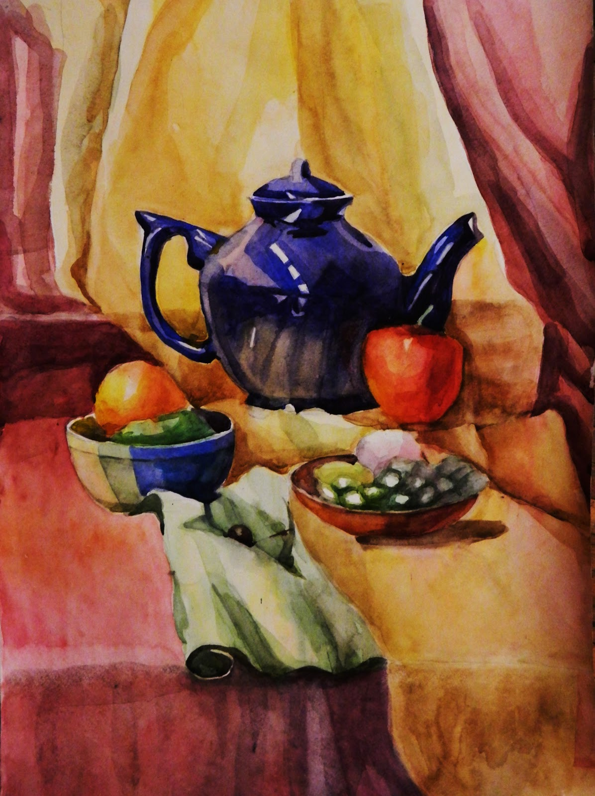 Уч-ки.(один из учеников) Нарисовать натюрморт из бытовых предметов, используя один из контрастов.