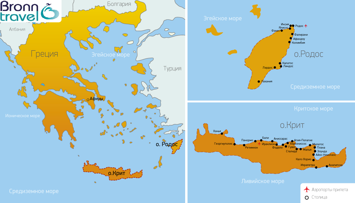 Основные курортные центры Крита: