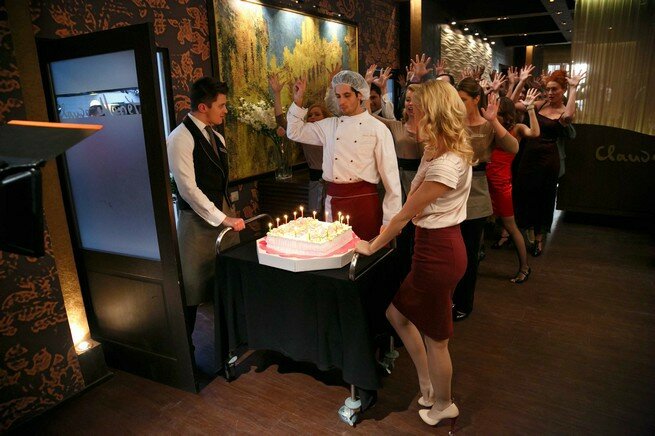 То есть все блюда, которые показывали в кадре настоящие. И те, которые готовили на кухне и те, которые подавали в зал, все настоящее. При этом то, что готовилось для массовки были просто хорошими блюдами, а те, что попадали в кадр — настоящая высокая французская кухня. Вот так вот…