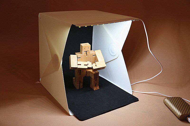 - Создайте свою студию. Вы можете сделать это на полу, если у вас есть место, но большинство людей устанавливают и на столах, особенно если ваш лайтбокс не очень большой.