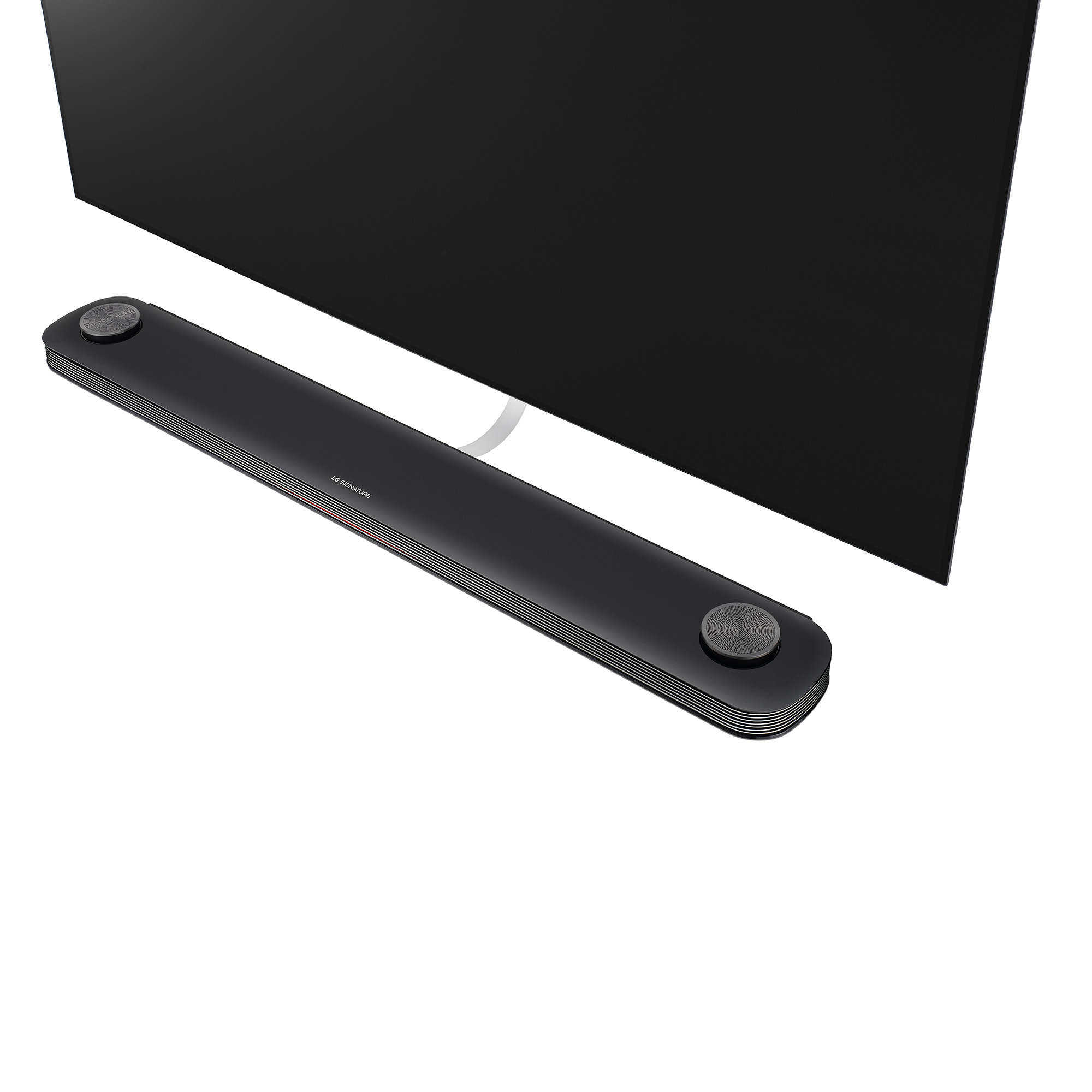 Тонкий, как лезвие, профиль 65-дюймовой модели W7 (менее 4 мм при настенной установке) создает иллюзию, словно вы смотрите в окно, а не на экран телевизора. В линейке OLED-телевизоров 2017 модельного года впервые предлагается технология звучания Dolby Atmos. Технология Dolby Atmos задает относительное местоположение каждого источника звука. При этом создается полноценная многослойная звуковая среда, полностью соответствующая всему богатству звуков окружающего мира. 77-дюймовый вариант модели W7 отмечен наградой выставки CES 2017 за инновационность в категории «Видеоэкраны».