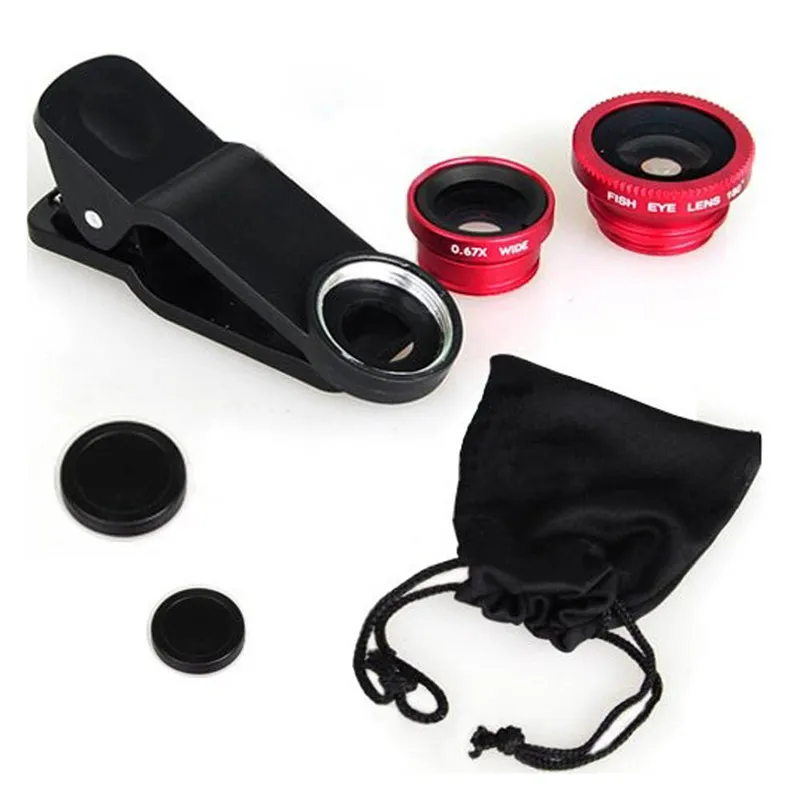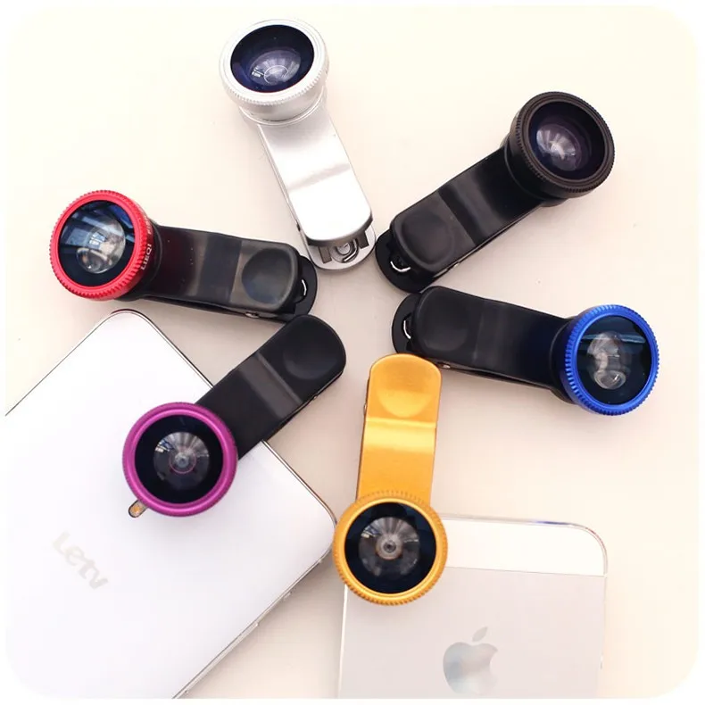 Объективы для телефона 3 в 1 (рыбий глаз, широкоугольная, макролинза)(золота,бордовый,темно-синый