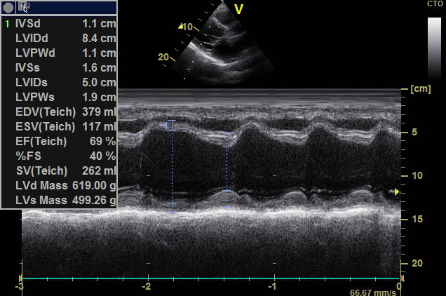 Заключение: Большое количество важной информации может быть получено с помощью визуализации в М-режиме с помощью изображений и измерений, которые относительно легко получить.