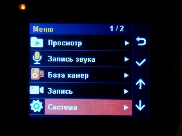 Как видно, характеристики регистратора вполне приличные для такой крохи. А как же юзабилити? С ним все в порядке. Система меню продумана до мелочей и состоит из нескольких основных пунктов: режима просмотра записей, настройки звука, базы камер, записи, системных настроек и форматирования.
