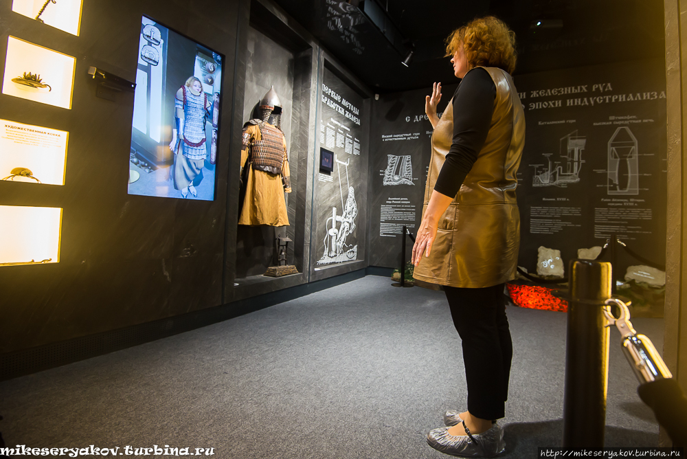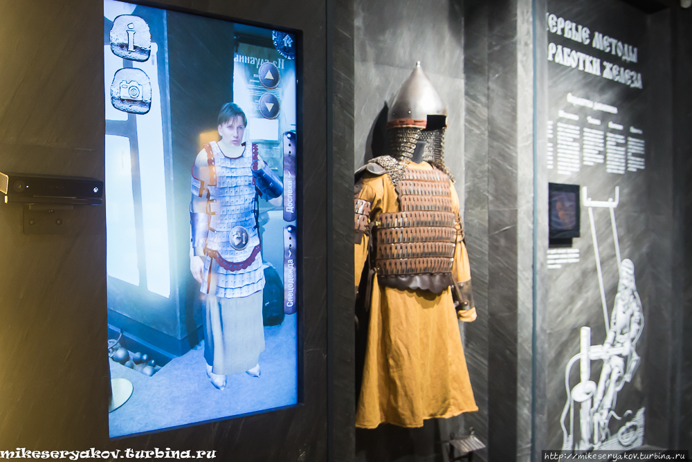 Мы ознакомились с разными этапами и видами древнего металлургического процесса: стенды, мультики, витрины. Руками меха покачать можно.