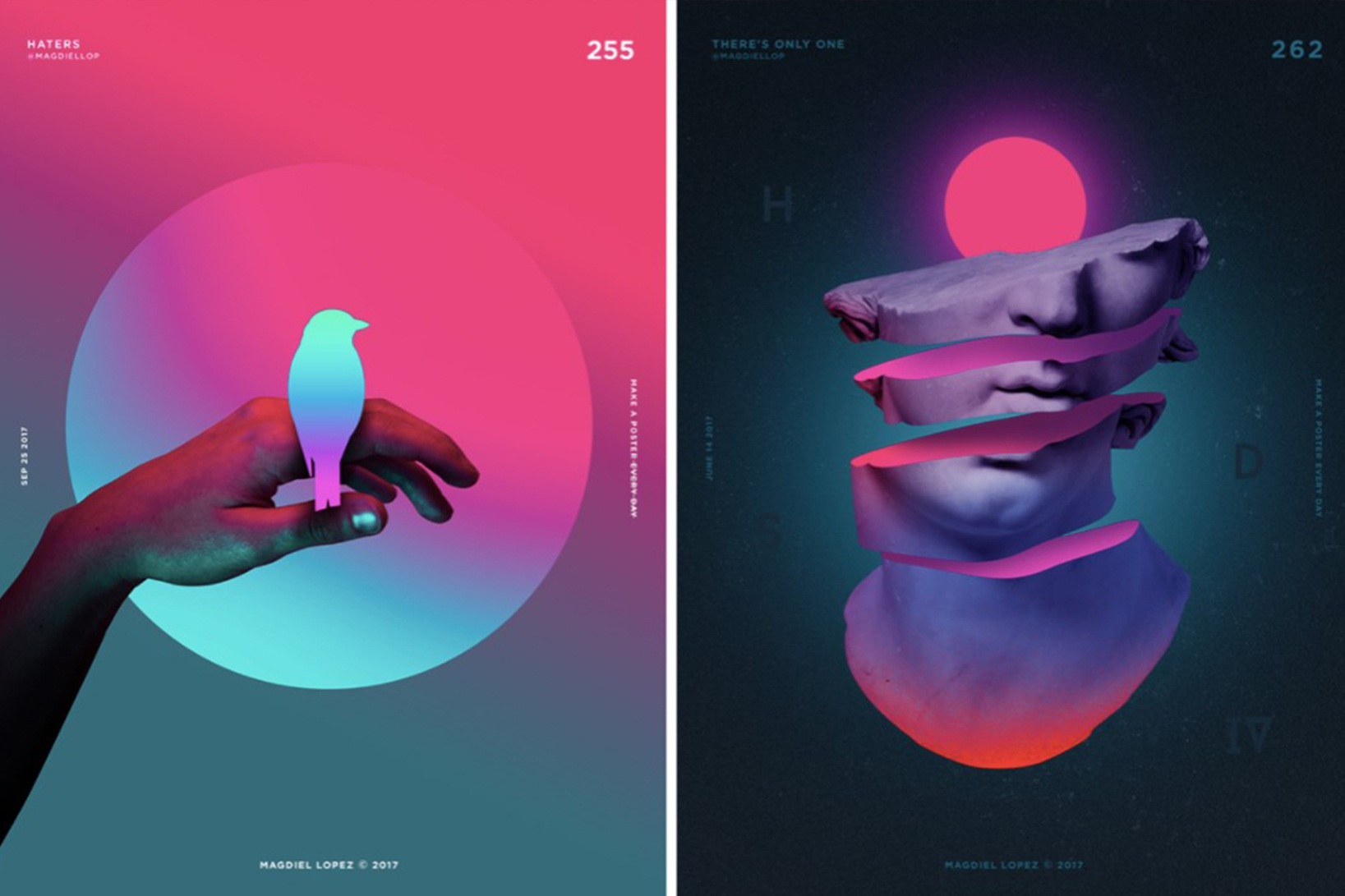 Автор: Barrett Reid-Maroney, Behance, Сандро Рыбак, Behance, Christo Pluto, Christo Pluto,Сияние аэрографа 80-х, кажется, появляется все больше и больше, как шаг назад от тенденции 2000-х годов 2000-х годов.— Джастин Хамра, арт-директор 99designs by Vista