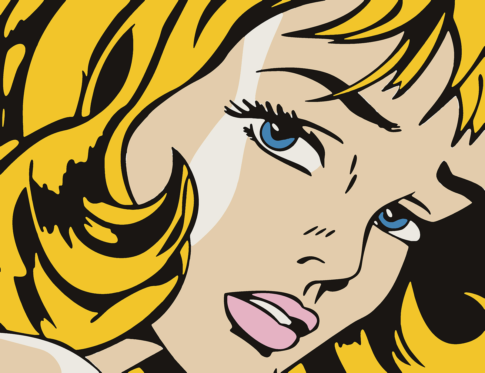 Лицо девушки в стиле поп-арт Рой Лихтенштейн — Постер — Печать на холсте — Деревянный …