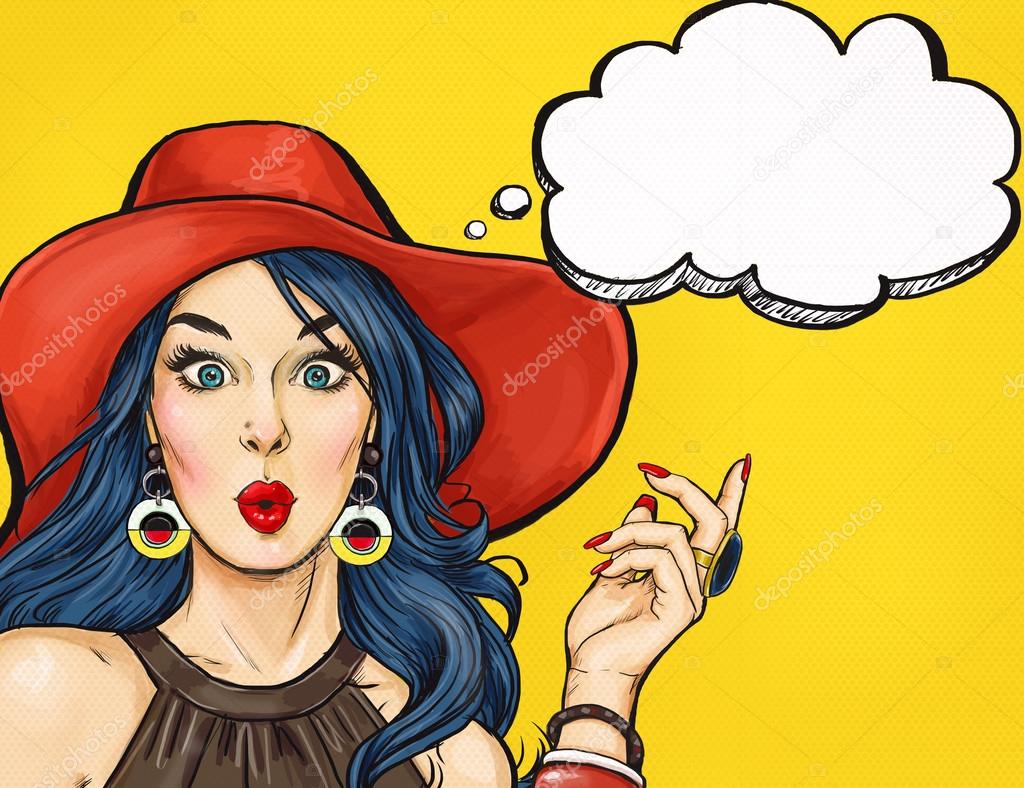 Вектор Премиум | Поп-арт иллюстрация девушки с речевым пузырем