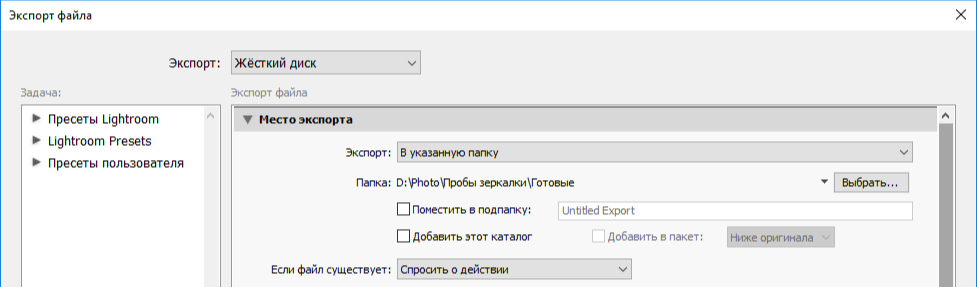 Куда следует сохранять экспорт Lightroom?