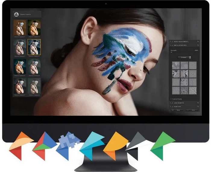 Этот набор инструментов идеально подходит для имитации пленок всех типов, а также старинных камер и объективов. Помимо применения фильтров, которые придают определенный вид, вы также можете добавлять творческие эффекты, такие как царапины, блики и мультилинза.