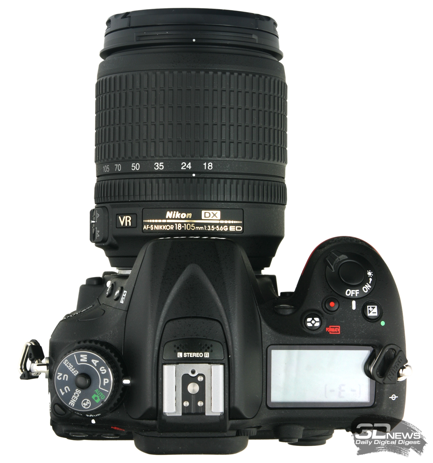 На основном мониторе (3 дюйма, 1 226 млн. пикселей, переехал с D7100 без изменений) поддерживает режим Live View. На нем можно вывести на экран всю служебную информацию, настройки, сетку или горизонт. Гистограмму вывести ни при фотосъемке, ни при видеосъемке нельзя. Автофокус улучшать не стали, он здесь контрастный, весьма медлительный и не очень точный, при видеосъемке будет не слишком полезен. Зато есть помощь при ручной фокусировке. Угол покрытия — почти 100 процентов.