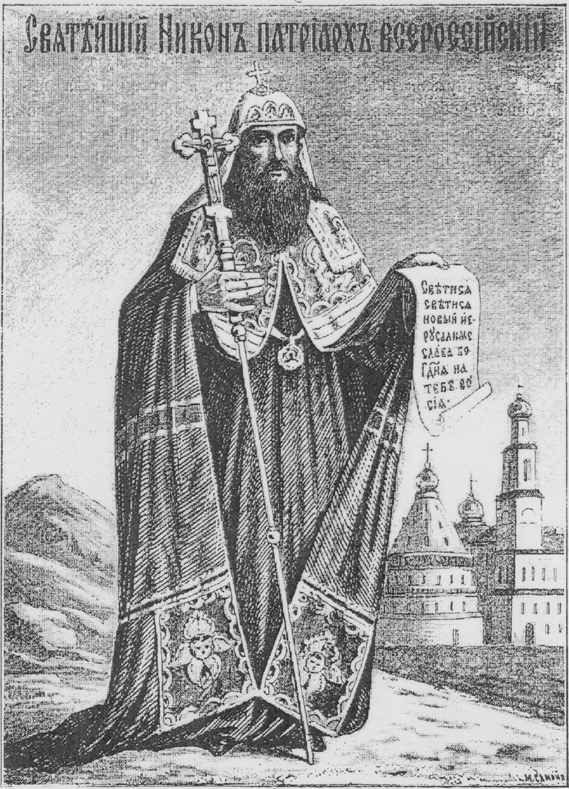 Никон (в миру — Никита Минов, 1605-1681) принял монашество в Анзерском скиту около 1635 года. Был настоятелем Кожеезерского (1643-1646) и архимандритом Новоспасского монастырей (1646-1648), митрополитом Новгородским (1648-1652), основал Новоиерусалимский Воскресенский (1655), Иверский на Валдае (1652) и Крестный Кийский (1656) монастыри. Никон пользовался большим авторитетом у царя Алексея Михайловича и имел влияние на государственные дела. В 1652 году он получил престол Патриарха Московского и Всея Руси.