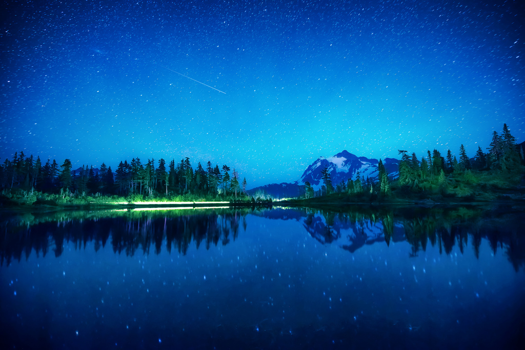 Красивое озеро ночью