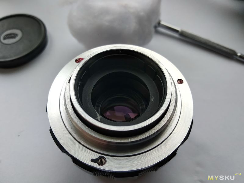Тут нужна определённая осторожность, чтобы не потерять юстировочное кольцо, прокладываемое межу корпусом и линзоблоком. Каждый объектив юстируется индивидуально, по этой причине у каждого объектива кольцо только к нему подобранного размера, поэтому в случае потери юстировочного кольца предстоит нетривиальная работа по юстировке объектива с камерой. А ещё для этого нужны соответствующие материалы…