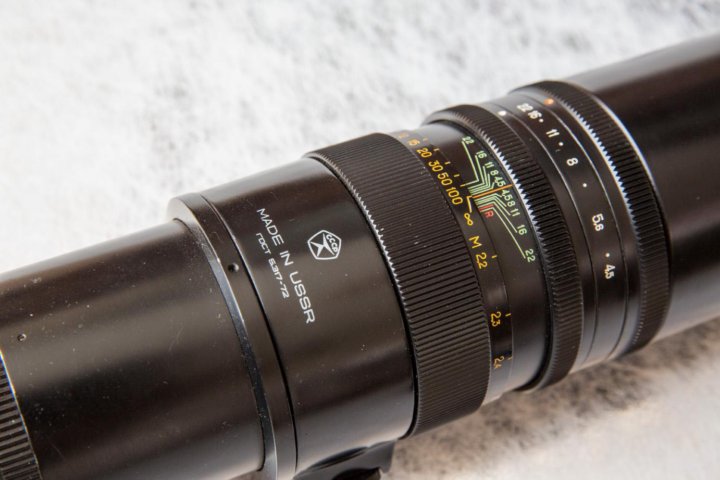 - Вес – объектив, как уже было упомянуто, довольно тяжелый. Это своего рода ‘советский стабилизатор изображения’. Большой вес помогает усилить инерционность объектива и уменьшить дрожание рук, или камеры на штативе. Но, также, руки после работы с такой техникой отваливаются уже через час (проверено личным опытом).