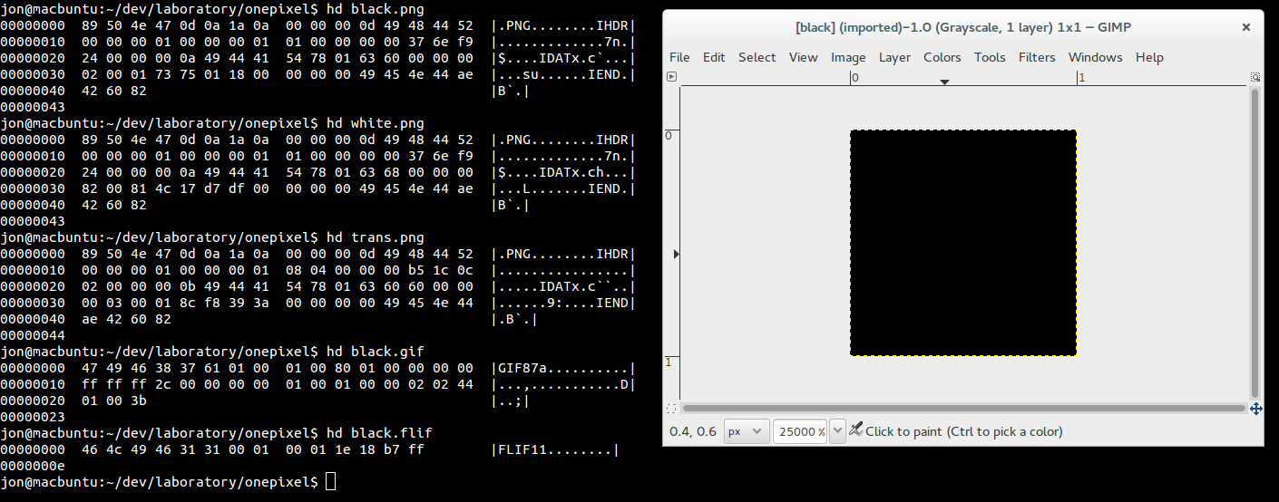 Если вам нужно что-то другое, кроме чёрного и белого, можно использовать формат PGM для представления одного пикселя любого цвета всего 12-ю байтами, или PPM размером 14 байт. Это всегда меньше, чем соответствующий FLIF (или любой другой формат со сжатием).