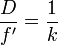 - k = f ′ D = 1 N {\displaystyle k={f’ \over D}={1 \over N}} .
