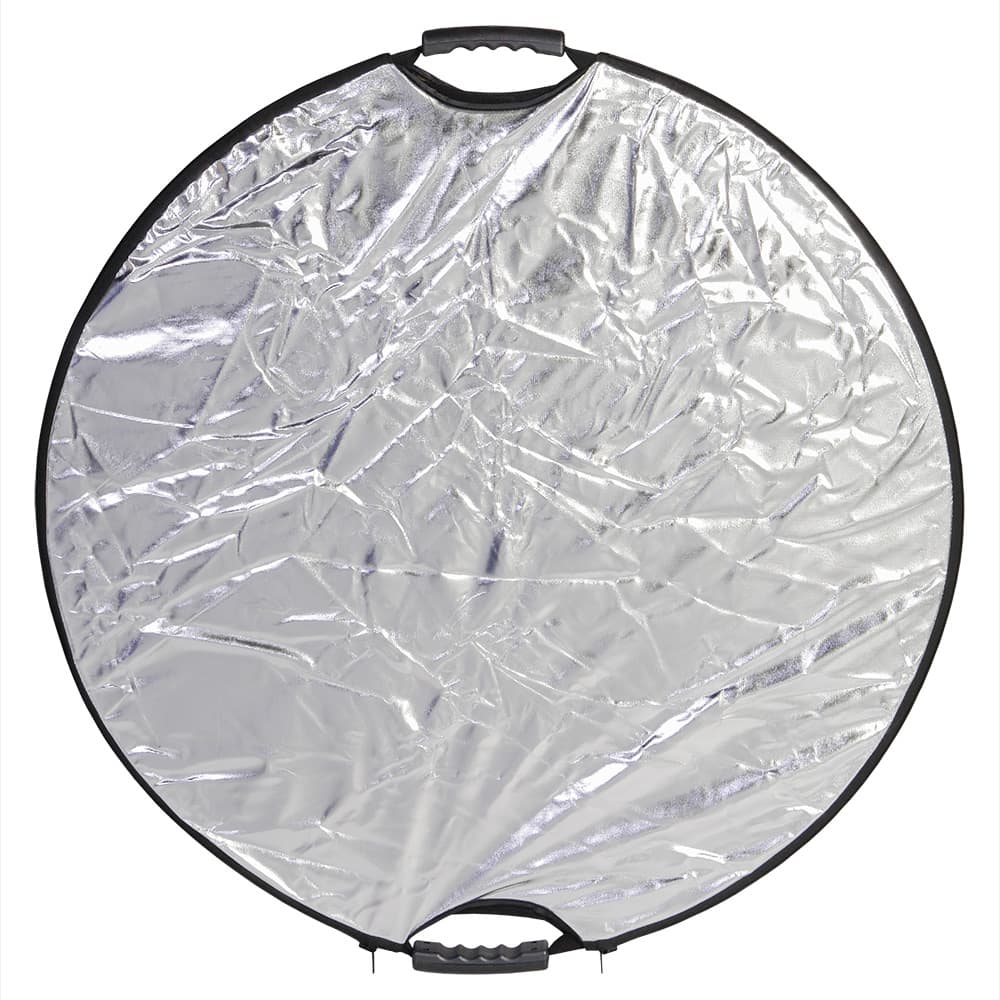 Если необходим холодный, жёсткий свет, то лучше всего использовать серебристые световые диски, так же они помогут в подсветке тени, и для создания контрового света. Серебристый фото отражатель, в отличие от белого, может находится на расстоянии 10 метров при этом не утратив цели своего назначения. Это значит что серебристый отражатель фото имеет большую область применения нежели белый, например в портретной съёмке при освещении объекта в яркий солнечный день, который находится в тени.