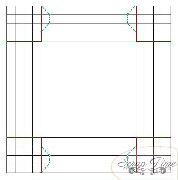 Прикладываем посередине, на глазок, лист бумаги формата А4 и делаем засечки длиной 70-80 мм в местах пересечения с линиями разметки.