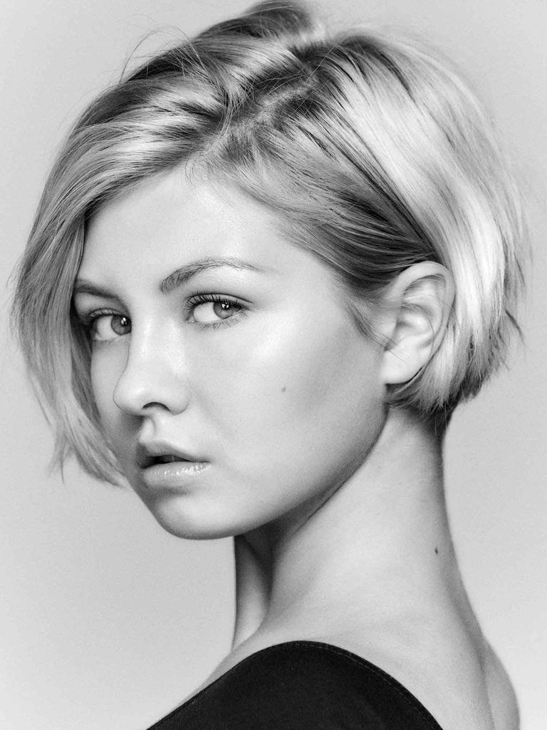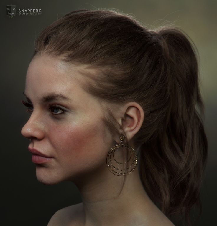 A 3/4 - вид лица , с другой стороны, относится к направлению, в котором лицо модели ориентировано относительно камеры. Это называется видом лица 3/4, потому что около 3/4 лица модели видны в такой позе . Модель изображена под углом 45 ° к камере, поэтому дальнее ухо находится вне поля зрения. Точный угол будет зависеть от физических характеристик лица модели. Напротив, 2/3 вид лица поворачивает голову модели немного дальше от камеры, так что дальний глаз находится очень близко к краю лица с небольшой границей плоти между глазом и пространство за лицом.