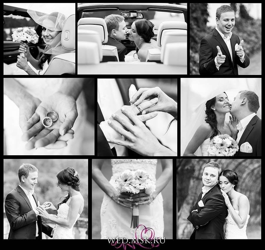 21. Коллажи — отличный способ скомпоновать свадебные фотографии, и рассказать историю. Попробуйте собрать несколько фотографий в одну общую композицию, объединенную одной идеей. Обязательно используйте все возможности современных фоторедакторов. Самый классный эффект — это черно-белые фотографии.