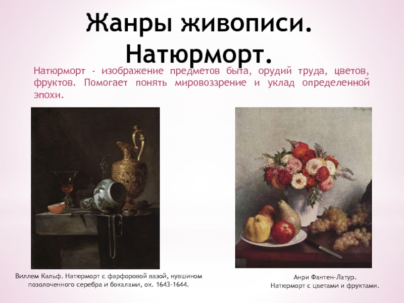 Разновидности натюрморта: Жанры в изобразительном искусстве и живописи. Деление картин по жанрам