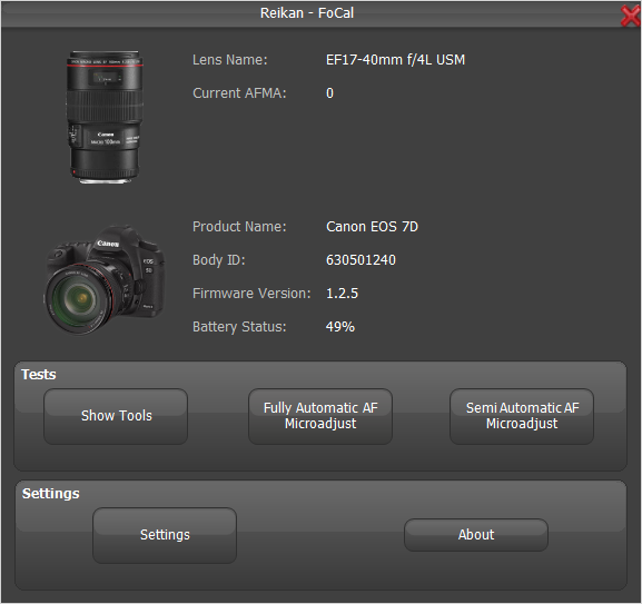 Программное обеспечение для настройки и калибровки автофокуса Reikan FoCal