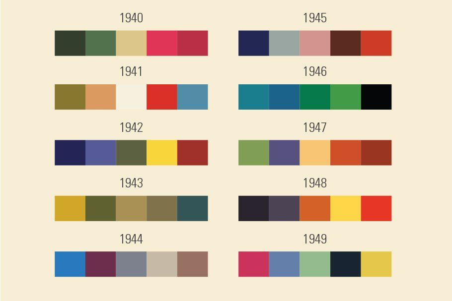 Полный список винтажных цветовых палитр см. далее в разделе «10 винтажных цветовых палитр, вдохновленных десятилетием».