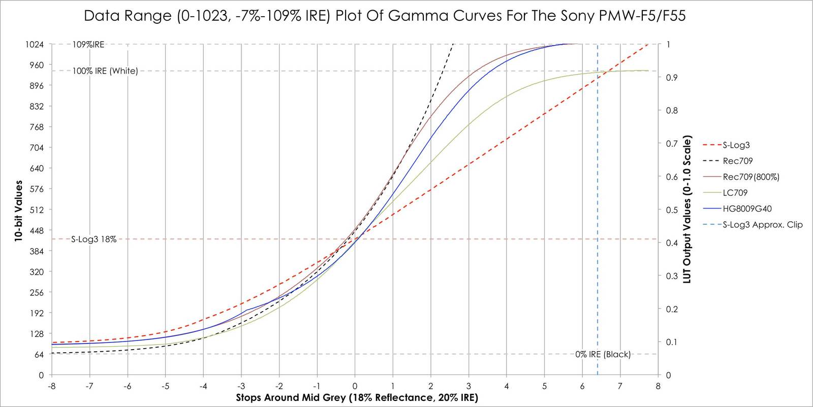 собой, то можно видеть разницу между S-Log2 и S-Log3 на графике. На практике же, гамма S-Log3, предлагает более качественную цветовую