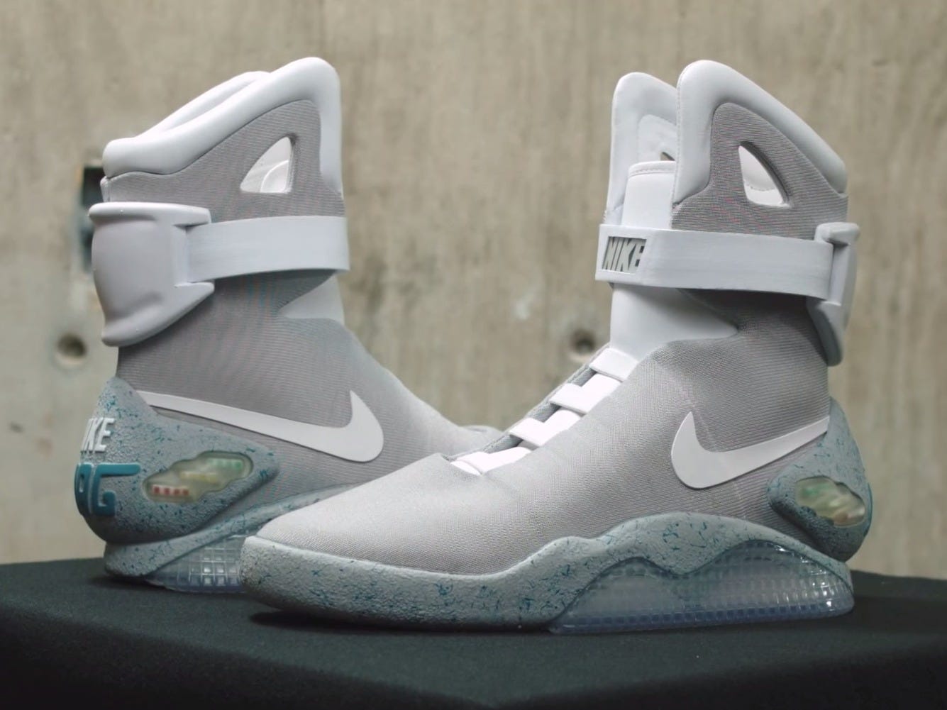 Первые перезаряжаемые кроссовки Nike, 2011 NIKE MAG, были разработаны в виде точной копии кроссовок из фильма «Назад в будущее 2». Все вплоть до очертаний, светящейся светодиодной панели и электролюминесцентного логотипа Nike на ремешке есть в новом кроссовке. Единственное отличие от оригинальной версии кроссовок из фильма — дополнительная пена в подошве, обеспечивающая повышенный комфорт.
