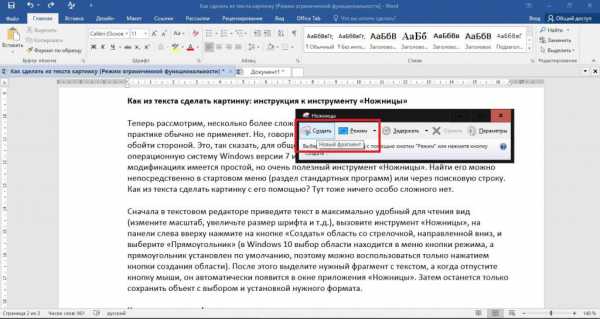ΠΠΎΠ½Π΅ΡΠ½ΠΎ, ΡΠΎΠ²ΡΠ΅ΠΌΠ΅Π½Π½ΡΠ΅ ΡΠ΅ΠΊΡΡΠΎΠ²ΡΠ΅ ΡΠ΅Π΄Π°ΠΊΡΠΎΡΡ, Π² ΡΠ°ΡΡΠ½ΠΎΡΡΠΈ Word, ΠΎΠ±Π»Π°Π΄Π°ΡΡ Π²Π΅ΡΡΠΌΠ° Π²Π½ΡΡΠΈΡΠ΅Π»ΡΠ½ΡΠΌΠΈ Π½Π°Π±ΠΎΡΠ°ΠΌΠΈ ΠΈΠ½ΡΡΡΡΠΌΠ΅Π½ΡΠΎΠ², ΠΊΠ°ΠΊ Π³ΠΎΠ²ΠΎΡΠΈΡΡΡ, Π½Π° Π²ΡΠ΅ ΡΠ»ΡΡΠ°ΠΈ ΠΆΠΈΠ·Π½ΠΈ, ΠΏΠΎΡΠΊΠΎΠ»ΡΠΊΡ ΡΠΌΠ΅ΡΡ ΡΠ°Π±ΠΎΡΠ°ΡΡ Π½Π΅ ΡΠΎΠ»ΡΠΊΠΎ Ρ ΡΠ΅ΠΊΡΡΠ°ΠΌΠΈ ΠΏΠΎ ΡΠ²ΠΎΠ΅ΠΌΡ ΠΏΡΡΠΌΠΎΠΌΡ ΠΏΡΠ΅Π΄Π½Π°Π·Π½Π°ΡΠ΅Π½ΠΈΡ, Π½ΠΎ ΠΈ Ρ Π³ΡΠ°ΡΠΈΡΠ΅ΡΠΊΠΈΠΌΠΈ ΠΎΠ±ΡΠ΅ΠΊΡΠ°ΠΌΠΈ, ΠΈ Π΄Π°ΠΆΠ΅ Ρ Π΄ΡΡΠ³ΠΈΠΌΠΈ ΡΠ°ΠΉΠ»Π°ΠΌΠΈ ΠΌΡΠ»ΡΡΠΈΠΌΠ΅Π΄ΠΈΠ°. ΠΠΎ Π΄ΠΎΡΡΠ°ΡΠΎΡΠ½ΠΎ ΡΠ°ΡΡΠΎ Ρ ΠΌΠ½ΠΎΠ³ΠΈΡ ΠΏΠΎΠ»ΡΠ·ΠΎΠ²Π°ΡΠ΅Π»Π΅ΠΉ Π²ΠΎΠ·Π½ΠΈΠΊΠ°Π΅Ρ Π½Π΅ΠΎΠ±Ρ ΠΎΠ΄ΠΈΠΌΠΎΡΡΡ ΠΏΡΠ΅ΠΎΠ±ΡΠ°Π·ΠΎΠ²Π°Π½ΠΈΡ Π²ΠΎΡΠ΄ΠΎΠ²ΡΠΊΠΎΠ³ΠΎ Π΄ΠΎΠΊΡΠΌΠ΅Π½ΡΠ° Π½Π΅ Π² ΡΠ΅ΠΊΡΡΠΎΠ²ΡΠΉ, Π° Π² Π³ΡΠ°ΡΠΈΡΠ΅ΡΠΊΠΈΠΉ ΡΠΎΡΠΌΠ°Ρ. ΠΠ±ΡΡΠ½ΠΎ ΡΠ°ΠΊΠΈΠ΅ Π΄Π΅ΠΉΡΡΠ²ΠΈΡ ΡΠ²ΡΠ·Π°Π½Ρ Ρ ΡΠΈΡΡΠ°ΡΠΈΡΠΌΠΈ, ΠΊΠΎΠ³Π΄Π° Π°Π²ΡΠΎΡ ΡΠ΅ΠΊΡΡΠ° Π½Π΅ Ρ ΠΎΡΠ΅Ρ, ΡΡΠΎΠ±Ρ Π»ΡΠ΄ΠΈ, ΠΏΡΠΎΡΠΌΠ°ΡΡΠΈΠ²Π°ΡΡΠΈΠ΅ ΠΈΡΡ ΠΎΠ΄Π½ΡΠΉ ΡΠ΅ΠΊΡΡ, ΠΌΠΎΠ³Π»ΠΈ Π΅Π³ΠΎ ΡΠ΅Π΄Π°ΠΊΡΠΈΡΠΎΠ²Π°ΡΡ. ΠΠ° ΡΠ΅ΠΉ ΡΡΠ΅Ρ ΠΌΠ½ΠΎΠ³ΠΈΠ΅ ΠΎΡΠ΅Π½Ρ Π³Π»ΡΠ±ΠΎΠΊΠΎ Π·Π°Π±Π»ΡΠΆΠ΄Π°ΡΡΡΡ, ΠΏΠΎΡΠΊΠΎΠ»ΡΠΊΡ, ΠΈΡΠΏΠΎΠ»ΡΠ·ΡΡ ΠΏΡΠΎΡΡΠ΅ΠΉΡΠΈΠ΅ ΡΠΎΠ²ΡΠ΅ΠΌΠ΅Π½Π½ΡΠ΅ ΡΠ΅Ρ Π½ΠΎΠ»ΠΎΠ³ΠΈΠΈ, ΠΏΡΠ°ΠΊΡΠΈΡΠ΅ΡΠΊΠΈ Π»ΡΠ±ΠΎΠ΅ ΠΈΠ·ΠΎΠ±ΡΠ°ΠΆΠ΅Π½ΠΈΠ΅, ΡΠΎΠ΄Π΅ΡΠΆΠ°ΡΠ΅Π΅ ΡΠ΅ΠΊΡΡΠΎΠ²ΡΡ ΡΠ°ΡΡΡ, ΠΌΠΎΠΆΠ½ΠΎ Π±Π΅Π· ΠΎΡΠΎΠ±ΠΎΠ³ΠΎ ΡΡΡΠ΄Π° ΠΏΡΠ΅ΠΎΠ±ΡΠ°Π·ΠΎΠ²Π°ΡΡ Π² Π»ΡΠ±ΠΎΠΉ Π΄ΡΡΠ³ΠΎΠΉ ΡΠΎΡΠΌΠ°Ρ. ΠΠΎ ΠΏΠΎΡΠΊΠΎΠ»ΡΠΊΡ ΠΌΡ Π·Π°ΡΡΠΎΠ½ΡΠ»ΠΈ ΠΈΠΌΠ΅Π½Π½ΠΎ ΠΎΡΠΈΡΠ½ΡΠΉ ΡΠ΅Π΄Π°ΠΊΡΠΎΡ Word, Π΄Π°Π²Π°ΠΉΡΠ΅ ΠΏΠΎΡΠΌΠΎΡΡΠΈΠΌ, ΠΊΠ°ΠΊ ΠΈΠ· ΡΠ΅ΠΊΡΡΠ° ΡΠ΄Π΅Π»Π°ΡΡ ΠΊΠ°ΡΡΠΈΠ½ΠΊΡ, ΠΈΡΠΏΠΎΠ»ΡΠ·ΡΡ Π΄Π»Ρ ΡΡΠΎΠ³ΠΎ Π΅Π³ΠΎ ΡΠΎΠ±ΡΡΠ²Π΅Π½Π½ΡΠ΅ Π²ΠΎΠ·ΠΌΠΎΠΆΠ½ΠΎΡΡΠΈ ΠΈ Π½Π΅ΠΊΠΎΡΠΎΡΡΠ΅ Π΄ΡΡΠ³ΠΈΠ΅ ΠΈΠ½ΡΡΡΡΠΌΠ΅Π½ΡΡ.