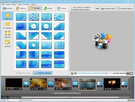Пришло время отредактировать ваше слайд-шоу. Вы можете использовать данные инструменты под экраном. Вы получаете более 60 эффектов перехода, устанавливаете соотношение сторон видео, добавляете фоновую музыку, фильтруете эффекты и многое другое. Используйте функции для создания одного удивительного слайд-шоу.