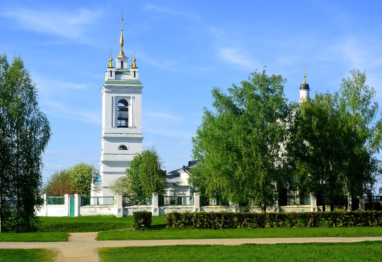 В центре села Константиново, напротив церкви Казанской иконы Божией Матери, расположена усадьба Есениных.