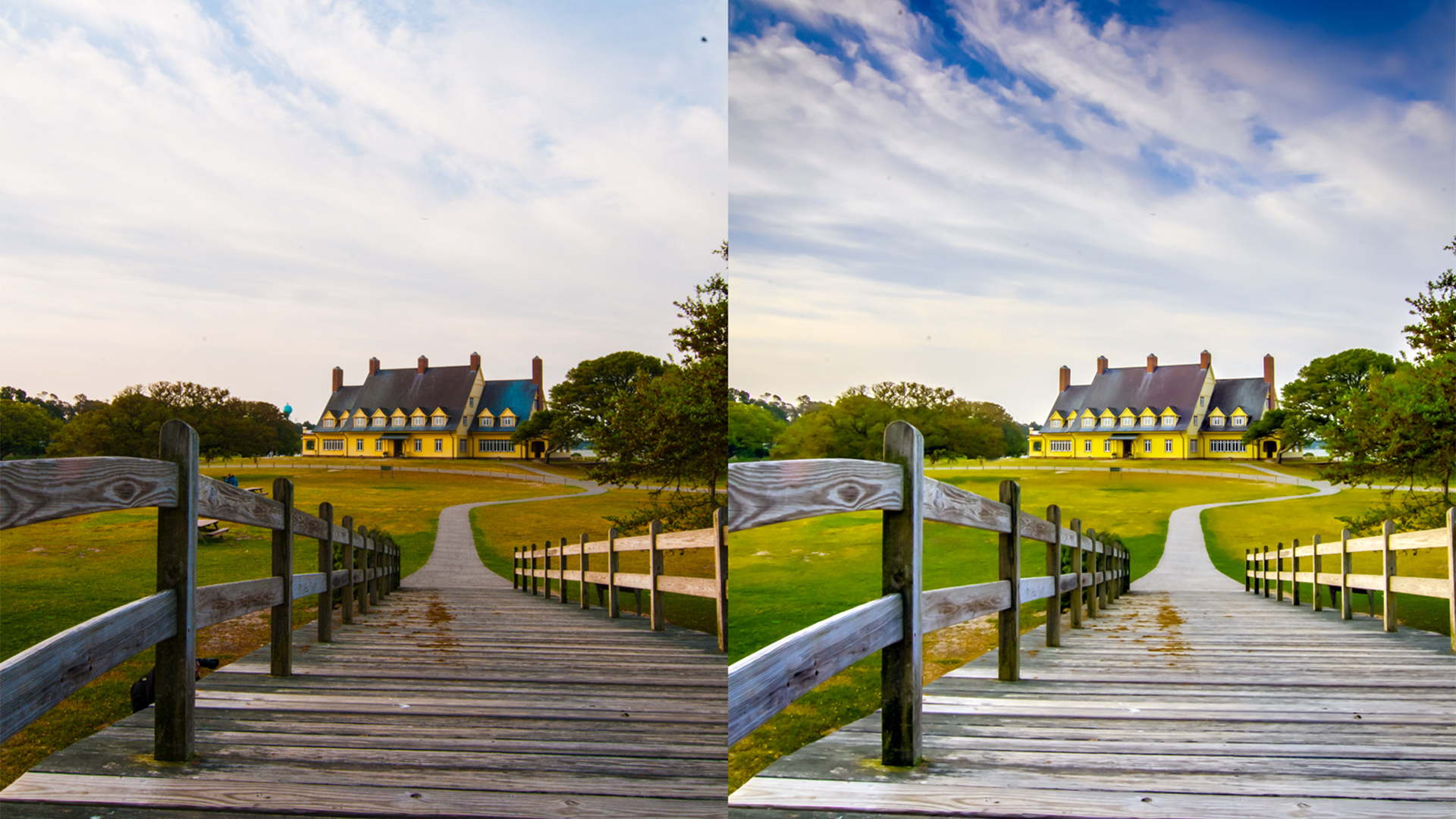 Π ΡΡΠΎΠΉ ΡΡΠ΅Π½Π΅ Π½Π° ΠΎΠ΄Π½ΠΎΠΌ ΠΊΠ°Π΄ΡΠ΅ ΡΠ΅ΡΡΠ΅ΡΡΡ Π΄Π΅ΡΠ°Π»ΠΈΠ·Π°ΡΠΈΡ ΠΎΠ±Π»Π°ΠΊΠΎΠ² Π² Π½Π΅Π±Π΅, Π° Π½Π° Π΄ΡΡΠ³ΠΎΠΌ β ΠΎΡΠ½ΠΎΠ²Π°Π½ΠΈΠ΅ ΠΌΠ΅Π»ΡΠ½ΠΈΡΡ. ΠΠΊΠΎΠ½ΡΠ°ΡΠ΅Π»ΡΠ½ΠΎΠ΅ HDR-ΠΈΠ·ΠΎΠ±ΡΠ°ΠΆΠ΅Π½ΠΈΠ΅ ΡΠΎΠ·Π΄Π°Π΅ΡΡΡ Π² ΠΊΠ°ΠΌΠ΅ΡΠ΅. Π’Π΅ΠΏΠ΅ΡΡ ΠΈΠ·ΠΎΠ±ΡΠ°ΠΆΠ΅Π½ΠΈΠ΅ Π±ΠΎΠ»Π΅Π΅ Π΄Π΅ΡΠ°Π»ΠΈΠ·ΠΈΡΠΎΠ²Π°Π½ΠΎ, Π΄Π΅ΡΠ°Π»ΠΈ Π²ΠΈΠ΄Π½Ρ ΠΊΠ°ΠΊ Π½Π° ΡΠ΅ΠΌΠ½ΡΡ