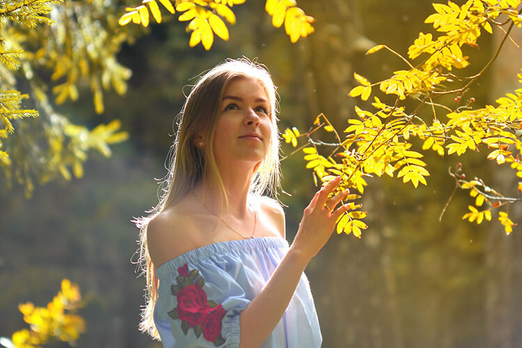 Тенистые участки также идеальны. Еще один способ уменьшить количество бликов — убедиться, что вы не снимаете объект на фоне широко открытого неба; вместо этого вы можете использовать свет, падающий сквозь деревья, кусты, здания или другие элементы ландшафта.