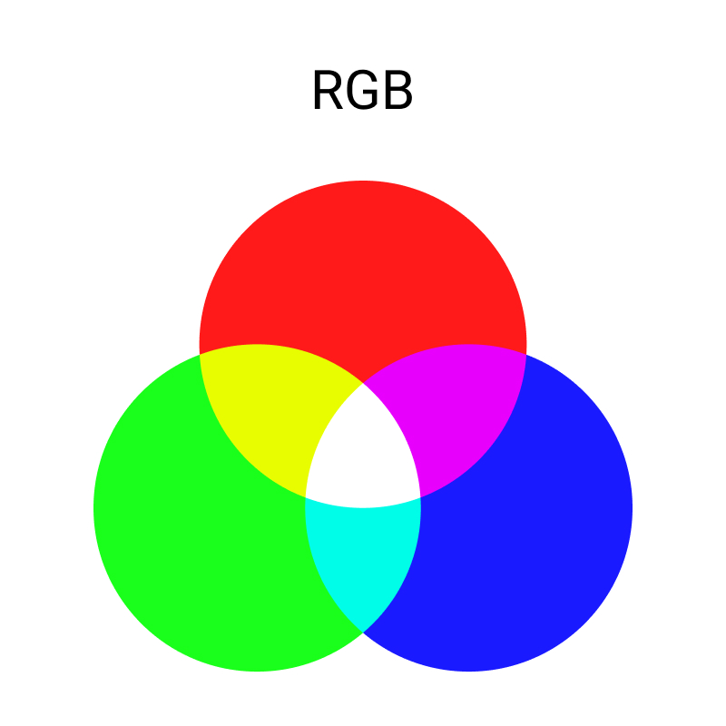 Модель RGB называют аддитивной, поскольку цвета в ней формируются посредством добавления основных цветов к чёрному цвету. Смешанные в равных долях они образуют ахроматические цвета, т.