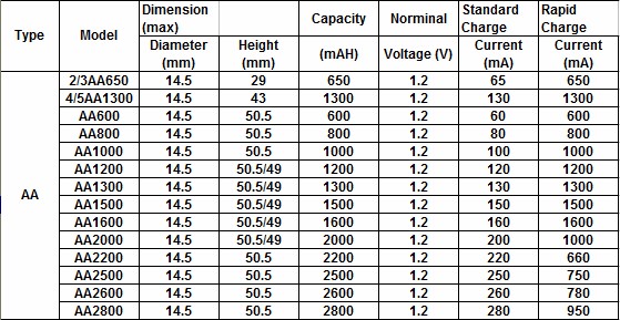 Подобную таблицу следует привести и для мизинчиковых типоразмеров ёмкостью 700 мАч.