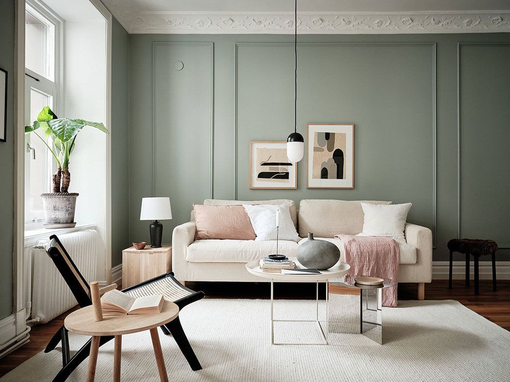 Такой цвет подойдет для кухни или детской комнаты, гостиной или спальни. В отличие от темного оттенка, светлый будет более гармонично смотреться в современных просторных минималистичных пространствах. А сочетание такого зеленого с голубым, нежно розовым, песочным и белым поможет визуально увеличить пространство в небольших комнатах, наполнить их светом и чистотой.