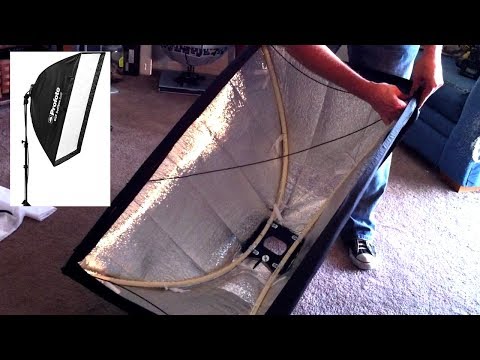 Но он все еще должен держаться нормально, если согнуть ребра софтбокса и вклинить их в четыре (армированных лентой) углах пятна сетки. Это немного утяжелит вашу коробку, поэтому отрегулируйте угол наклона стробоскопа, чтобы компенсировать это.